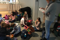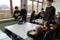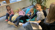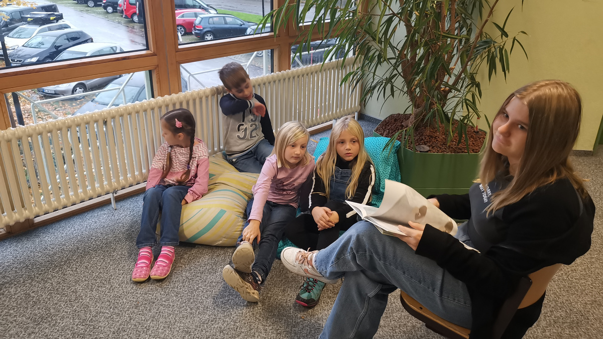 In kleinen Gruppen versammelten sich die Kinder in gemütlichen Leseecken und die „Kleinen“ lauschten gespannt den älteren Schülerinnen und Schülern, die mit großem Engagement die witzige Geschichte von der Denkmaschine von Peter Hacks vortrugen.