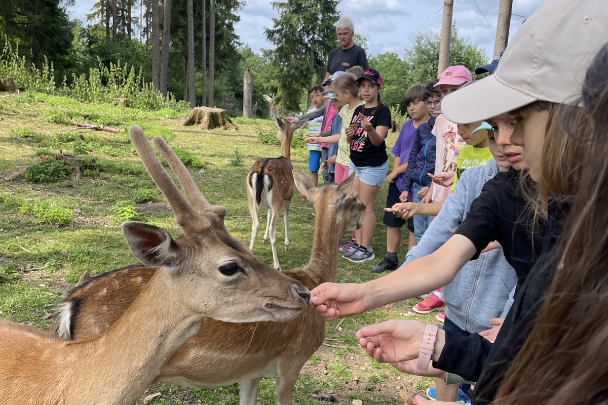 Eines der Highlights war das Gehege mit dem Damwild. Wir durften die Tiere füttern und hatten dabei die Möglichkeit, mehr über ihre Lebensweise zu erfahren. Es war schön zu sehen, wie sie sich um uns herum versammelten und das Futter genossen.