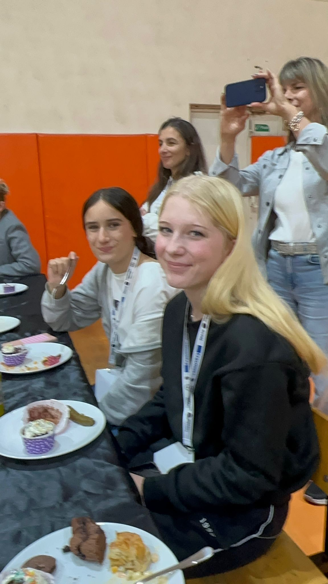 Am letzten Tag besuchten wir mit großer Begeisterung unsere Landeshauptstadt Stuttgart, zunächst das Mercedes-Benz-Museum und anschließend den Fernsehturm. Zum großen Finale trafen wir uns zum gemeinsamen Abschlussessen, zur Zertifikatübergabe und zum Diskoabend in der Aula der Schule, die vor allem die Eltern und einige Kolleginnen und Kollegen sowie Schulklassen wunderschön gestaltet und dekoriert hatten. Das ausgezeichnete Essen wurde von den Eltern der deutschen Schüler*innen gekocht und vorbereitet und viel zu schnell war unsere gemeinsame Zeit dann vorüber.