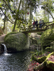 auch auf der Wild-Line-Hängebrücke die Aussicht genossen. Während die Schüler*innen vom Turm des Baumwipfelpfades hinunterrutschten, tranken die Lehrerinnen einheimische Teinacher Limonade.