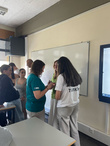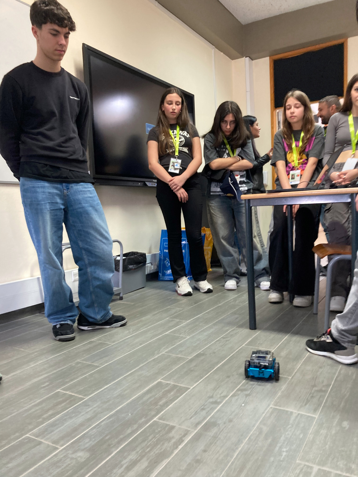Ein besonderer Schwerpunkt der Woche war der Workshop zur Künstlichen Intelligenz, der im MakerSpace der GMS Althengstett stattfand. Hier arbeiteten die Teilnehmerinnen und Teilnehmer mit Photon-Robotern, die auf anschauliche Weise zeigten, wie Künstliche Intelligenz lernt und arbeitet. Mit viel Begeisterung programmierten die Gäste selbstfahrende Fahrzeuge, erprobten die Grundlagen der Personenerkennung und entwickelten Funktionen, mit denen der Roboter autonom einkaufen konnte. Dieser praxisnahe Workshop vermittelte nicht nur technisches Wissen, sondern regte auch zum kreativen Problemlösen an und förderte die Zusammenarbeit in internationalen Teams.