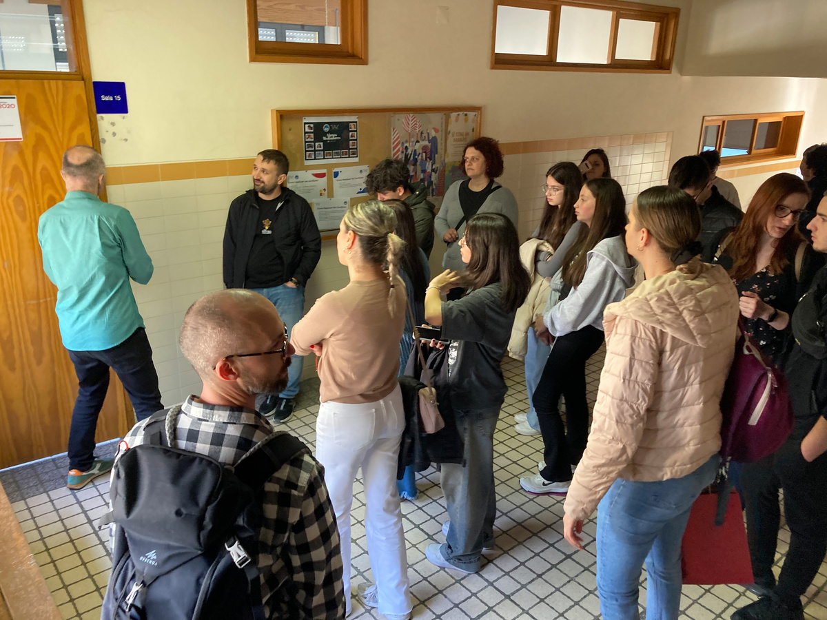 Unsere Reise nach Portugal begann mit einem spannenden Tag an der Agrupamento de escolas Terras do Ave Schule in Pedome. Zunächst nahmen die Schülerinnen und Schüler an Sprachkursen mit ihren Gastgebern teil. Anschließend führte uns der Koordinator Almerindo Oliveira durch die Schule. Wir besichtigten verschiedene Klassenzimmer wie Informatik und Robotik, die Sporthalle, die Erasmus+ Ecke der Schule und die Bibliothek, unseren Treffpunkt für den Tag. Dort wurden wir vom Schulleiter Alberto Costa begrüßt und erhielten unsere Akkreditierungen sowie Geschenke von der Gastgeberschule. Jedes Land präsentierte seine Schule und seine Städte, was eine gute Gelegenheit war, sich kennenzulernen. Wir lernten auch den Konfliktmanager der Schule kennen, eine sehr wichtige Rolle an jeder Schule, besonders an diesem Tag. Nach dem Mittagessen in der Schule gab es einen Coding-Workshop und eine Präsentation des mBot2. Wir hatten viel Spaß und haben etwas Neues gelernt. Die Schülerinnen und Schüler beendeten den Tag damit, einige Unterrichtsstunden ihrer Gastgeber zu besuchen, während die Lehrer die Stadt Famalicão erkundeten.