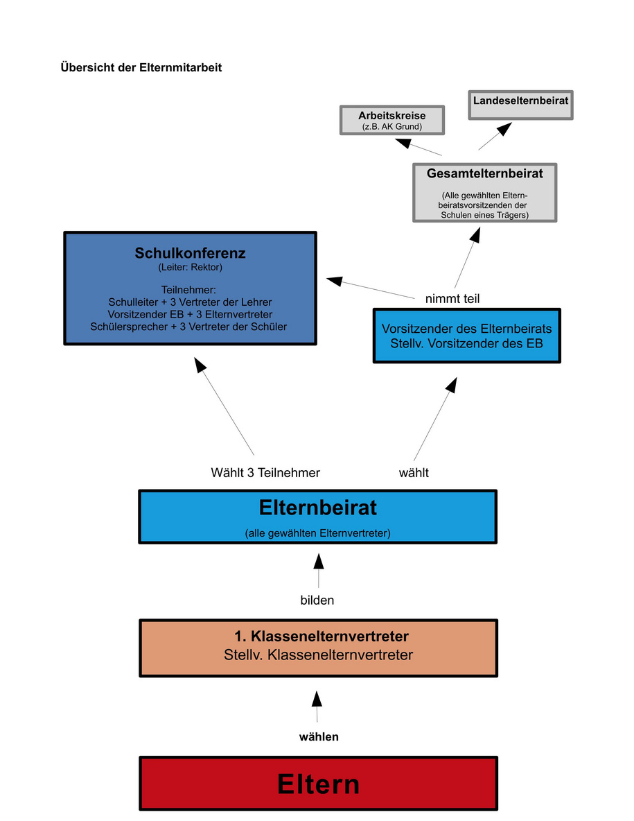 Das wichtigste schulinterne Gremium ist die Schulkonferenz, deren Vertreter aus den Reihen der Elternbeiräte gewählt werden.