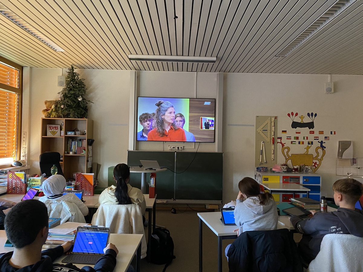 Die Klasse 8a nahm am ARD-Medientag am Workshop „Achtung! So gefährden Medien die Demokratie“ teil. Der Workshop erwies sich als äußerst informativ und lehrreich: Die Schülerinnen und Schüler erhielten spannende Einblicke darin, wie Medien unsere Meinungsbildung beeinflussen können und welche Risiken durch Falschinformationen oder einseitige Berichterstattung entstehen.