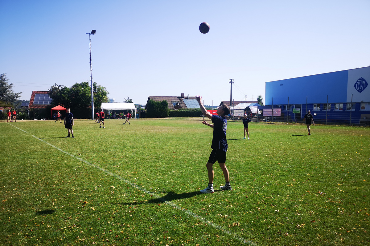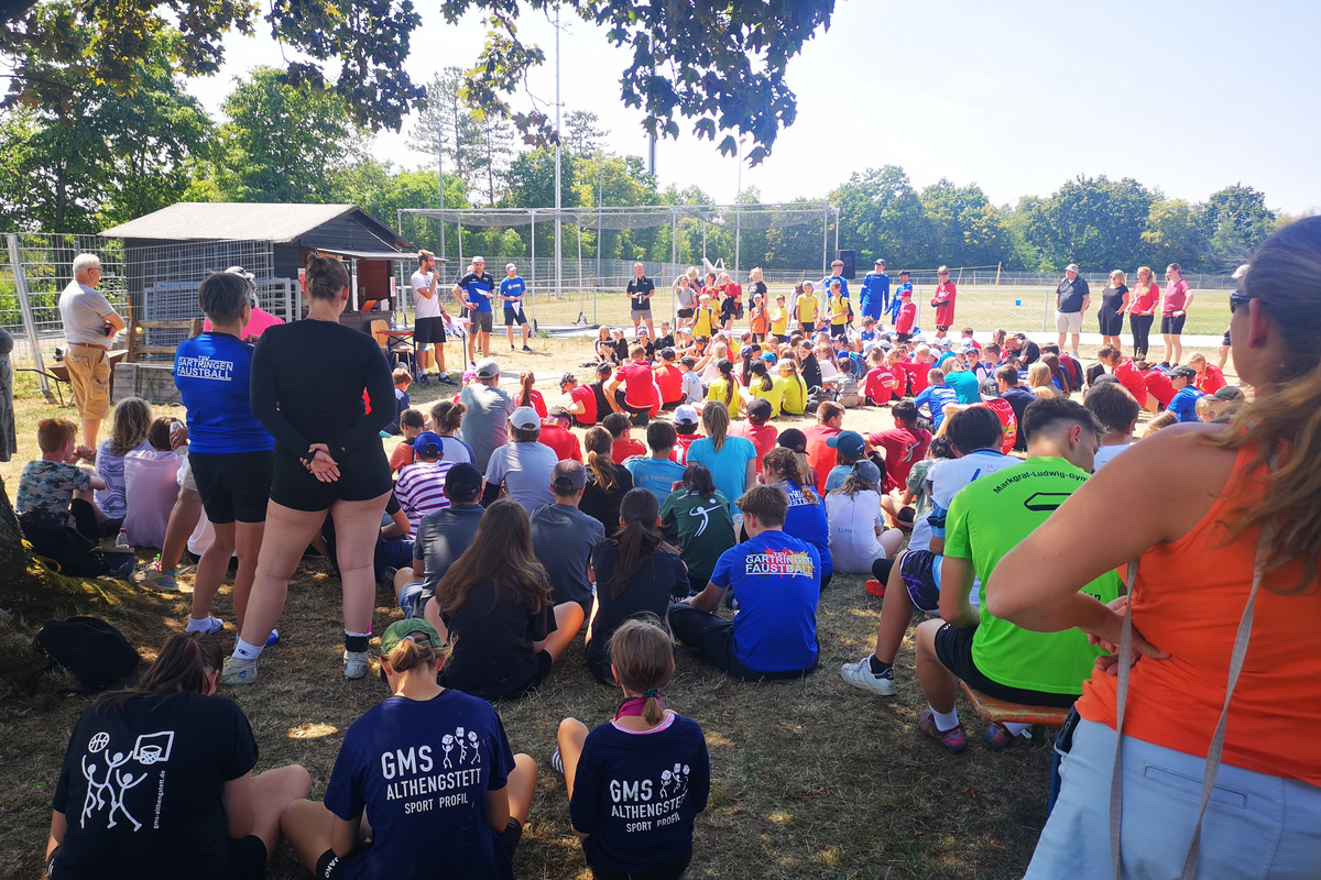 Am 23.07.2022 nahmen zwei Teams der Gemeinschaftsschule Althengstett an den 33. Schulmeisterschaften im Faustball teil, das vom TV Unterhaugstett in Kooperation mit dem Schwäbischen Turnerbund (STB) und dem Badischen Turnerbund (BTB) ausgerichtet wurde. Ganz im Sinne des Gemeinschaftsgedankens waren unsere Teams aus unterschiedlichen Klassenstufen sowie unterschiedlichen Leistungsniveaus zusammengestellt. Aktive SpielerInnen spielten gemeinsam mit SpielerInnen, die bis vor kurzem noch keine Vorerfahrung im Faustball hatten, ein tolles und erfolgreiches Turnier. Da die GMS Althengstett die einzige Schule war, die eine reine Mädchenmannschaft meldete, wurde unser Mädchenteam zum Schulmeister gekürt. Gleichzeitig musste das Team jedoch bei den Jungen mitspielen. Doch auch hier schlugen sie sich wacker und so freuten sich beide Teams am Ende über bemerkenswerte Plätze 11 und 12 von insgesamt 18 Mannschaften in der Altersklasse K10. Bemerkenswert deshalb, weil sich unsere Teams teilweise mit Mannschaften messen mussten, die schon häufiger an Faustballturnieren teilnahmen und z.T. Nationalspieler in deren Reihen hatten. Neben Urkunden und einem kleinen Pokal dürfen sich die SpielerInnen auch noch über je eine Eintrittskarte zu den Faustball-Weltmeisterschaften in Mannheim freuen.
