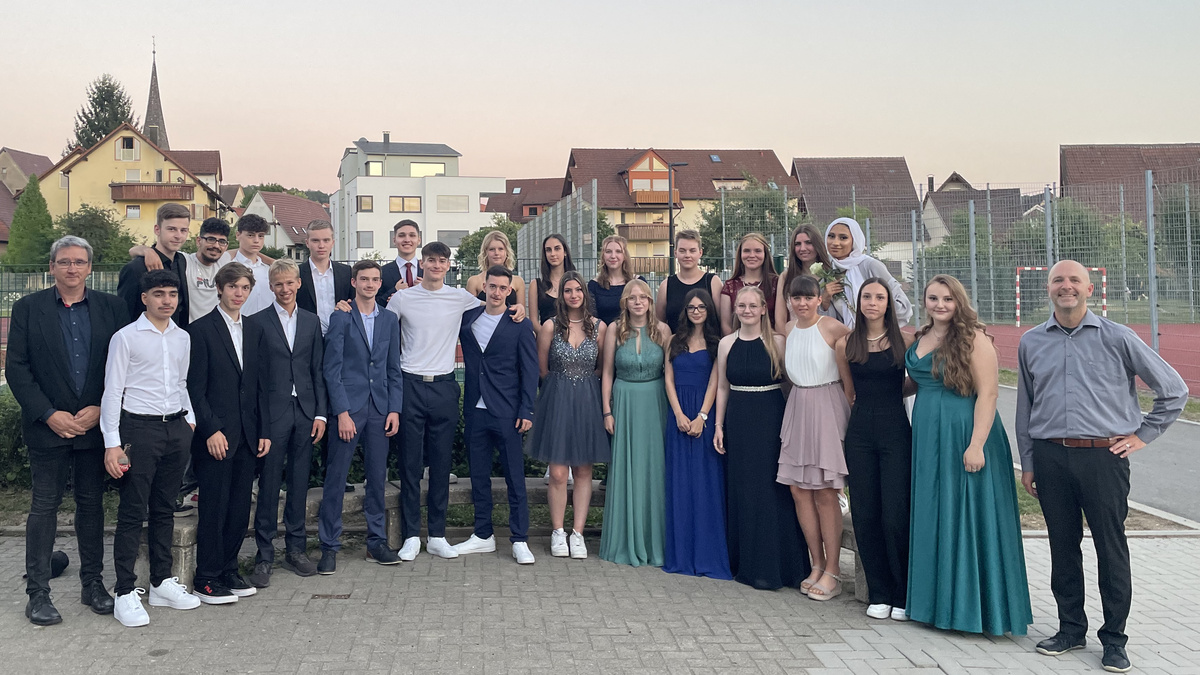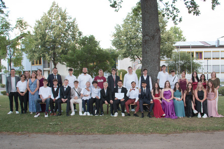 Im Rahmen einer stimmungsvollen Feier wurden am 22. Juli 34 Absolventen der 10. Klasse der Gemeinschaftsschule geehrt. Schulleiterin Elke Ruf freute sich allen Schülerinnen und Schülern zum erfolgreichen Abschluss und damit zur Mittleren Reife gratulieren zu können. Besonders stolz war sie auf den Notendurchschnitt von 2,2. Trotz des außerordentlichen und besonders für Schülerinnen und Schüler schwierigen Schuljahres haben diese gezeigt, was sie können. Höhepunkt der Zeugnisübergabe war die Übergabe der Belobigungen und Preise: 13