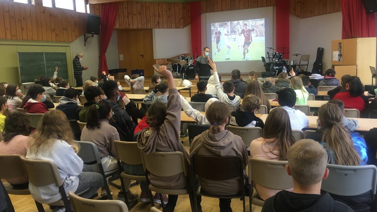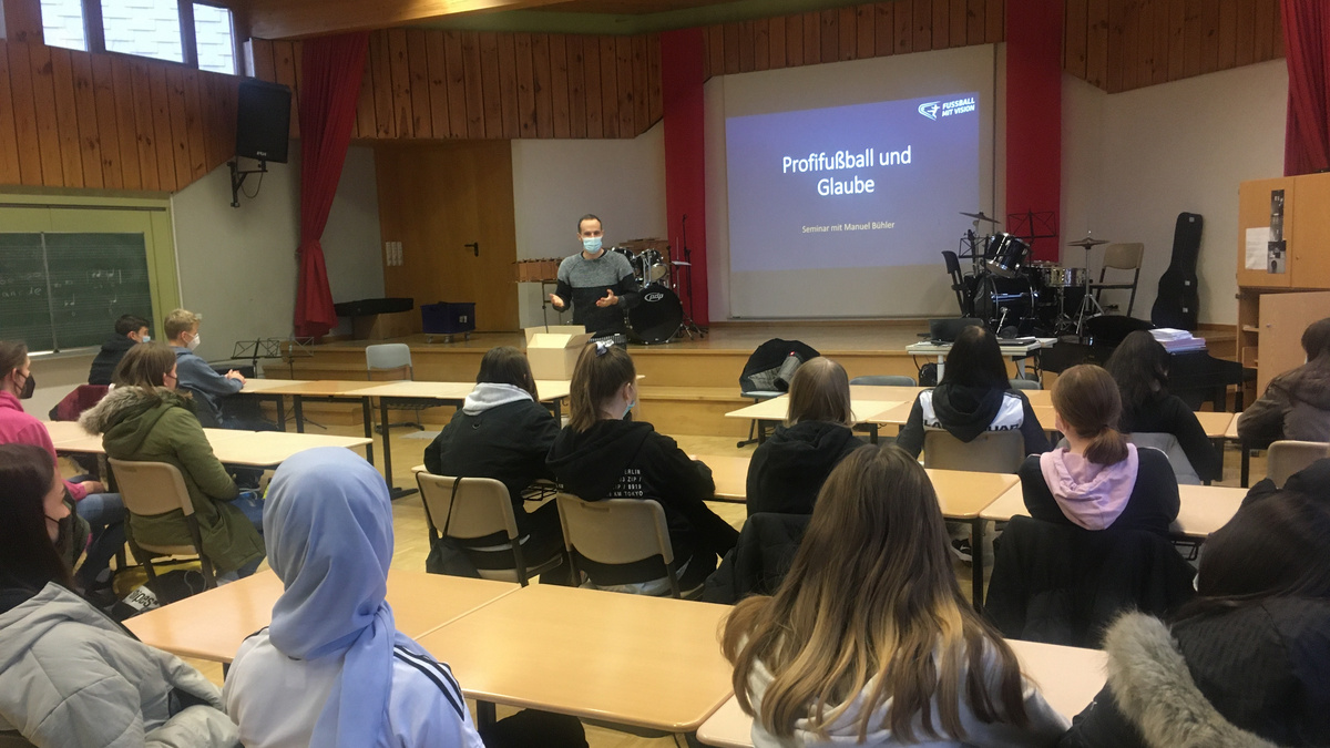 Mit diesen Fragen starteten wir in das Seminar mit Manuel Bühler, einem ehemaligen Profifußballer. Im Rahmen des Projektes "Fußball mit Vision" gestaltete er für mehrere Klassen den Religions- und Ethikunterricht.