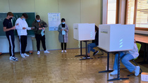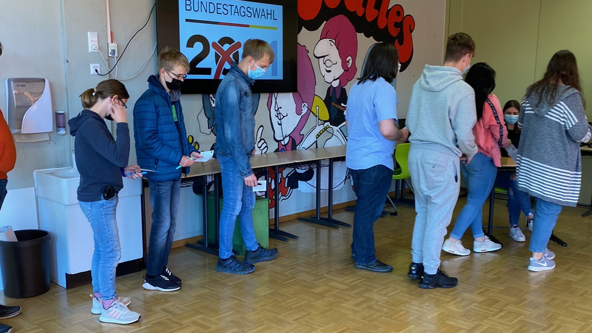 In den letzten Wochen stand das Thema „Demokratie und Wahlen“ auf dem Stundenplan und nun ging es - wie bei der „echten“ Wahl - für die Klassen 8-10 in das Wahllokal. Die Wahlhelfer/innen, die zuvor die Wählerverzeichnisse anlegten und später die Stimmen auszählten, übernahmen aktiv Verantwortung und sorgten für einen reibungslosen Ablauf bei der Wahl.