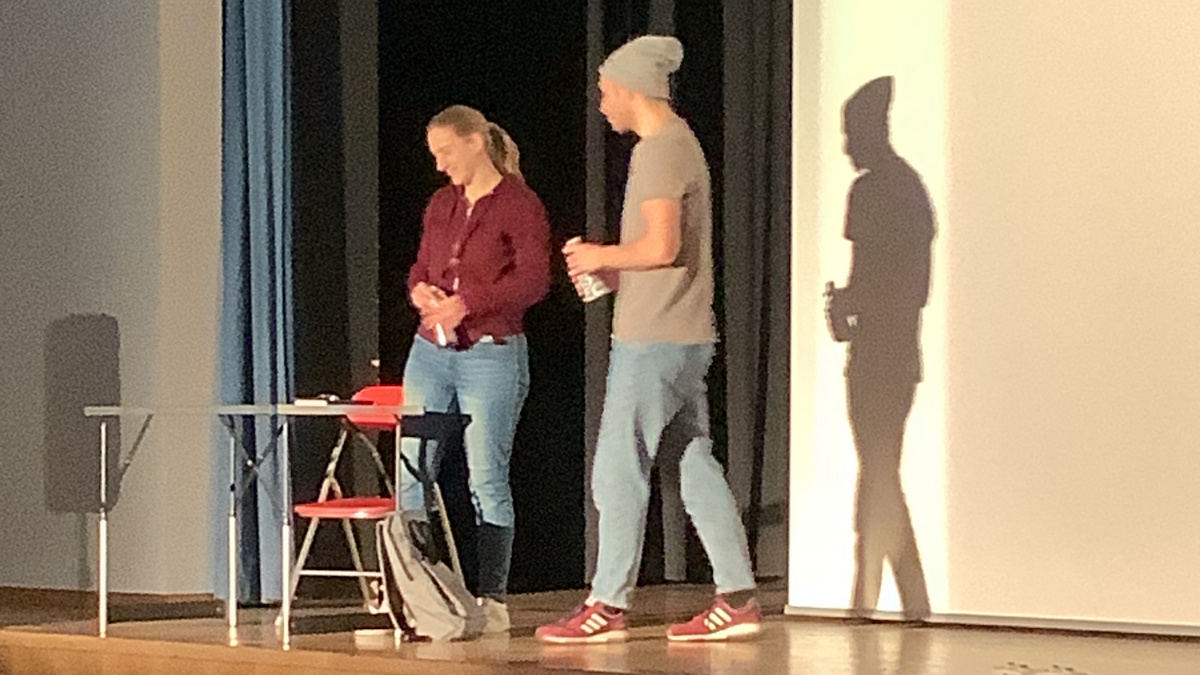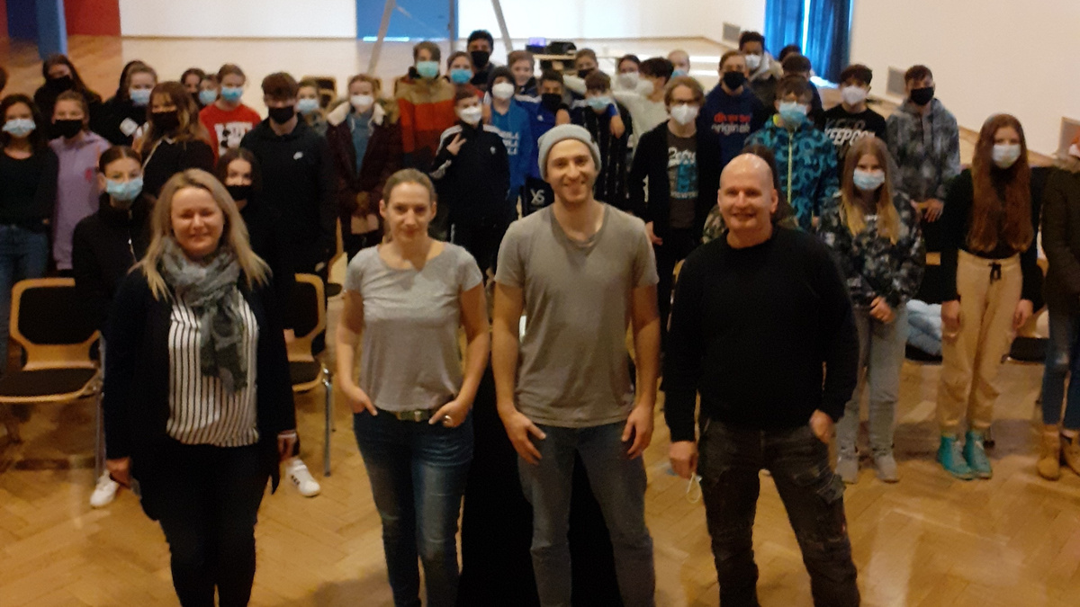„Am Limit!“ war daher eine willkommene Abwechslung im von Corona geprägten Schulalltag und brachte den SchülerInnen einen Hauch von Normalität. SchülerInnen und LehrerInnen waren gleichermaßen begeistert! So wurde ein Theaterbesuch trotz strenger Coronaauflagen möglich, da nicht die Schüler das Theater besuchten, sondern das Theater die Schüler. Dies war nicht zuletzt auch möglich, da die Kosten in Höhe von ca. 1400,00€ vom WEISSEN RING und dem Förderverein der GMS übernommen wurden. Eine rundum gelungene Veranstaltung, die SchülerInnen und Schauspielern gleichermaßen Freude machte.