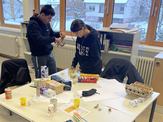 Im Februar stellten sich 118 Gruppen aus den Klassen 1 bis 10 einer spannenden Herausforderung: der Marshmallow-Challenge! Mit nur 20 Spaghetti, einem Marshmallow (in Form von Playmais) und einem Meter Klebeband hatten die Teams genau 20 Minuten Zeit, um den höchsten Turm zu bauen.