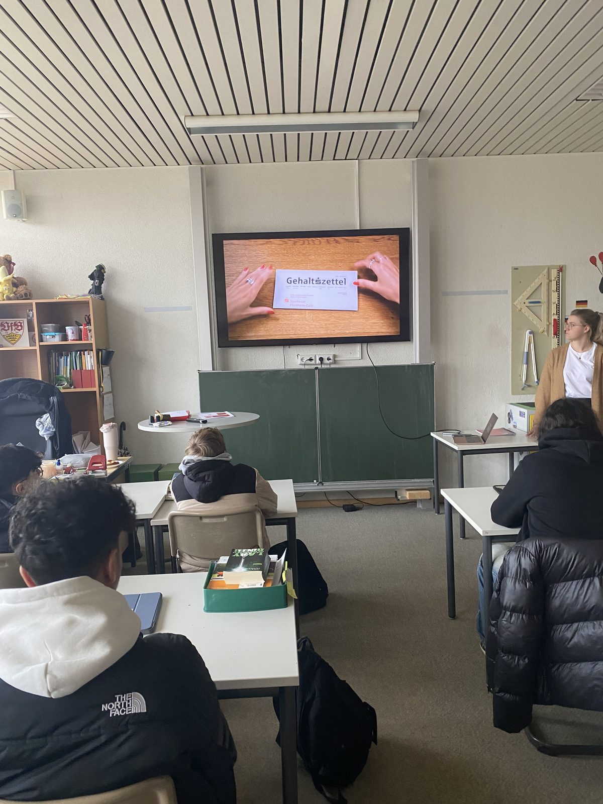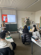 Zudem erhielt die Klasse einen Überblick über verschiedene Ausbildungsberufe im Finanzamt, wie zum Beispiel den Beruf des Steuerfachangestellten oder den des Finanzwirts. So konnten sie sehen, welche Karrieremöglichkeiten es im Bereich der Finanzverwaltung gibt.