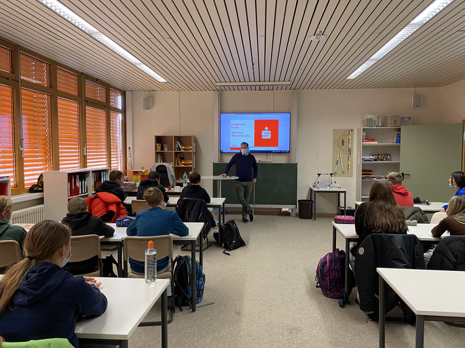 Am 09.11.21 besuchte Herr Striepen von der Kreissparkasse Pforzheim Calw die Klassen 8 der Gemeinschaftsschule.Dabei erhielten die Schülerinnen und Schüler einen Einblick in das Unternehmen und lernten die Ausbildungsberufe sowie deren Inhalte näher kennen.