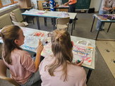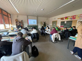 Im Anschluss an den informativen Vortrag hatten die Klassen die Möglichkeit, eigene Taschen zu bedrucken. Dabei konnten sie kreative Motive gestalten und diese mit professioneller Unterstützung auf Stofftaschen übertragen. Diese praktische Einheit sorgte nicht nur für Abwechslung, sondern gab auch einen kleinen Einblick in handwerklich-gestalterische Tätigkeiten.